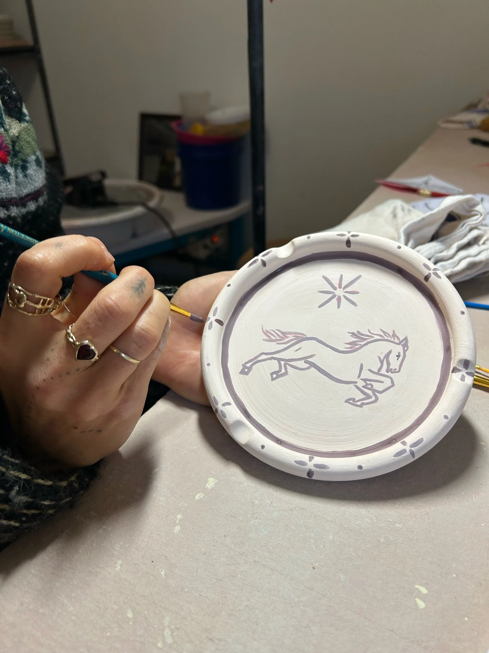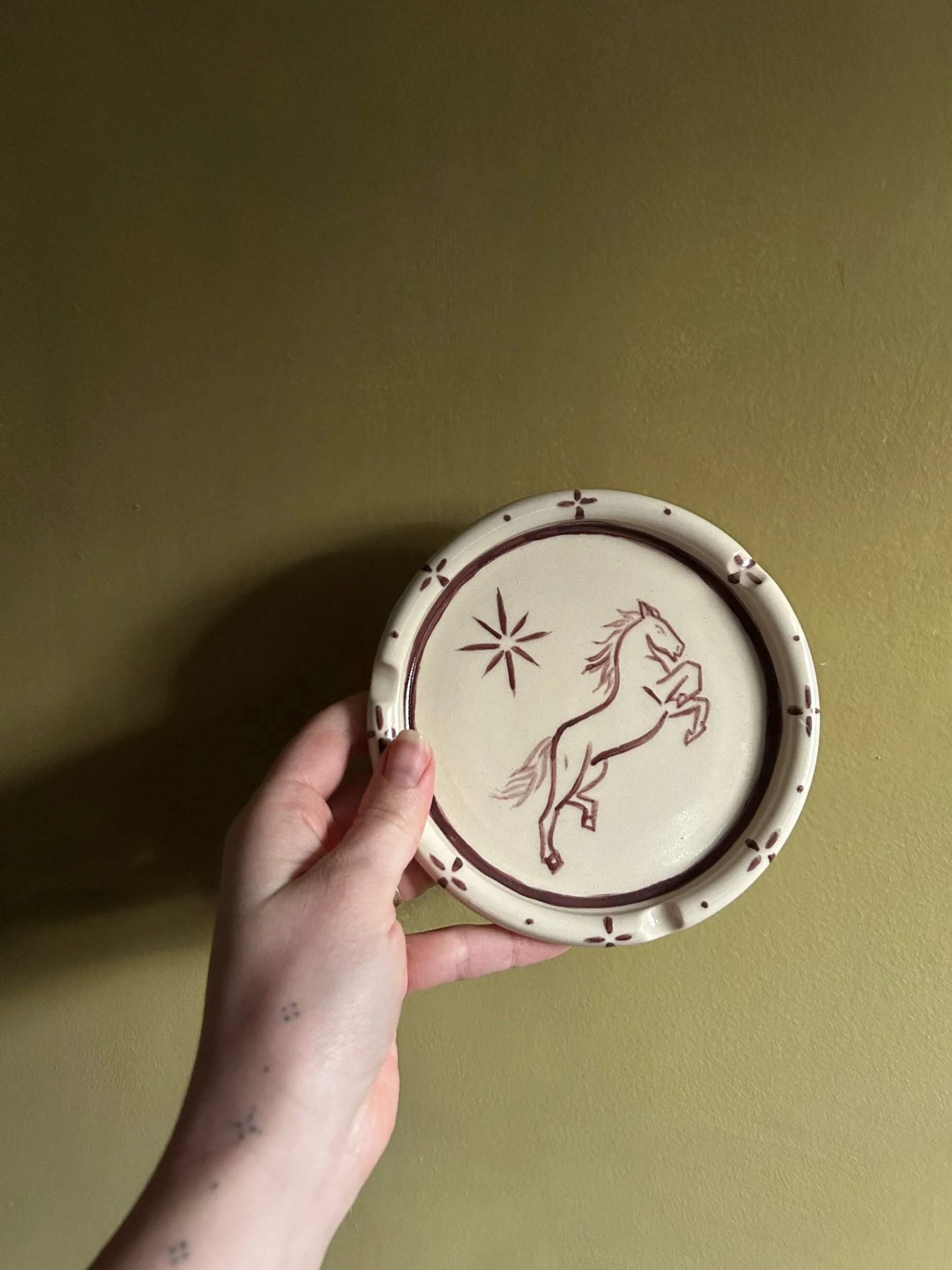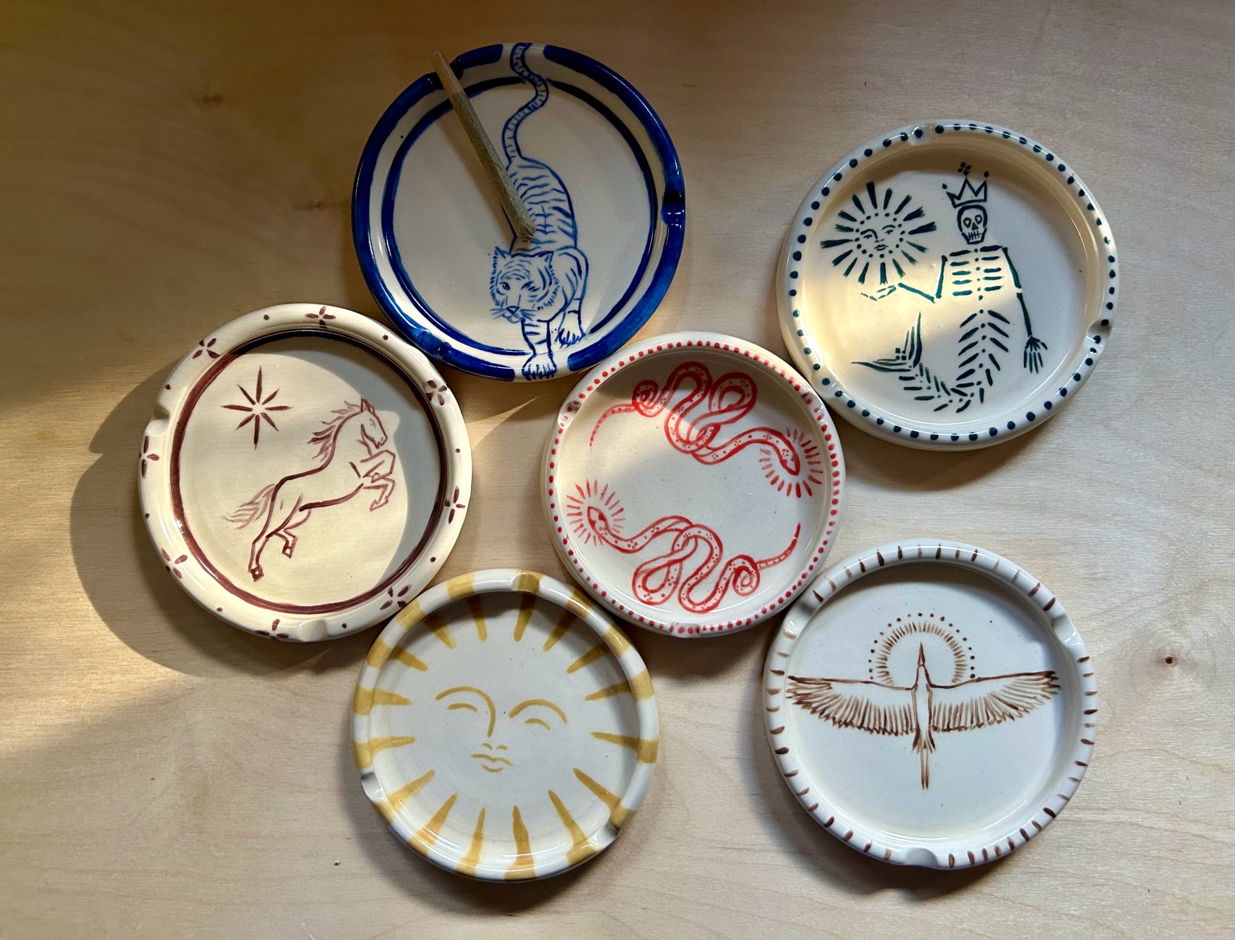 A Meltz x Bluestone Babe match made in heaven. The ashtray is the perfect canvas to showcase Rosa's etherial stick & poke designs- collect your very own coffee table showstopper. Wheel thrown by Alex, hand painted by Rosa.