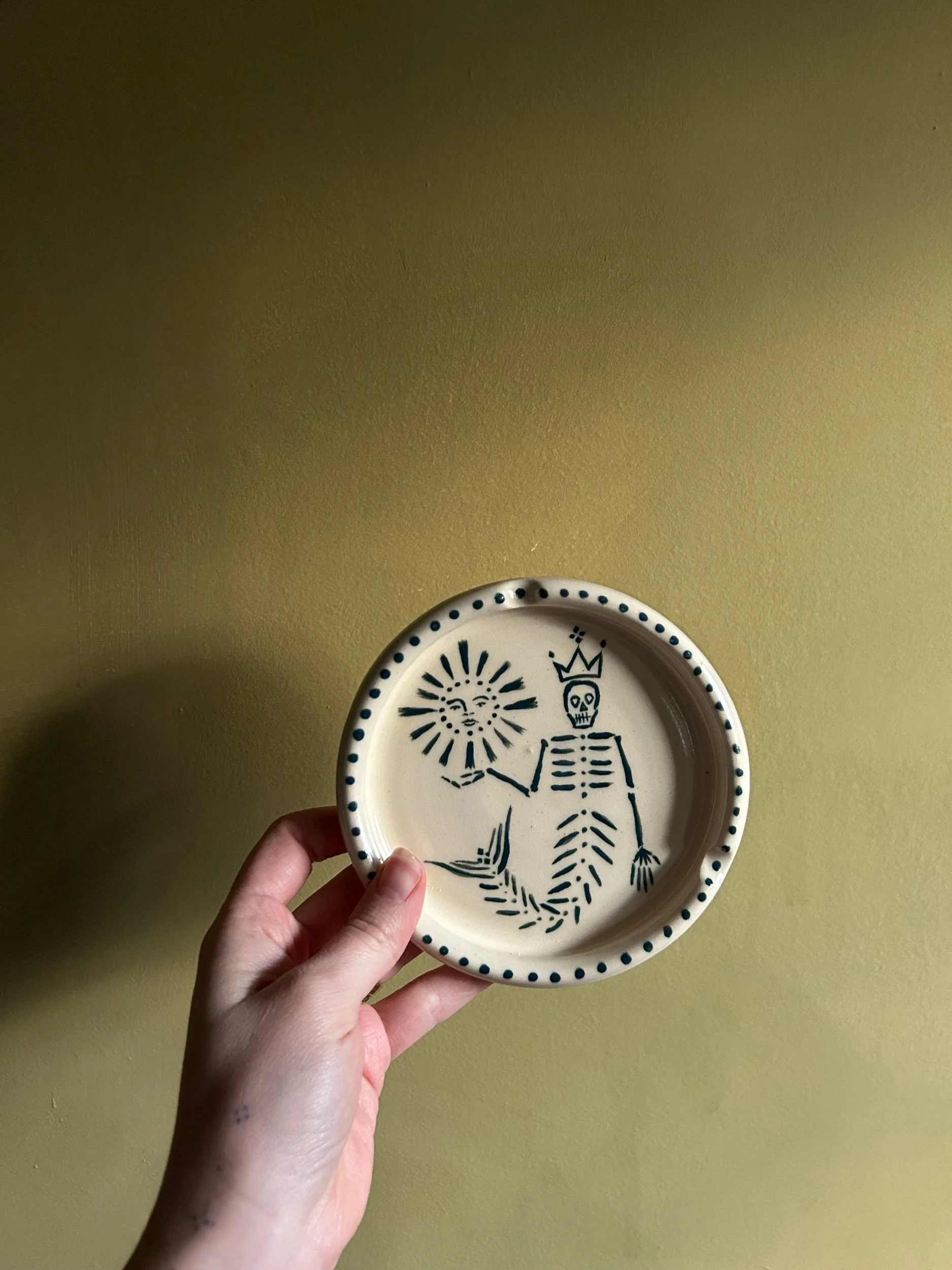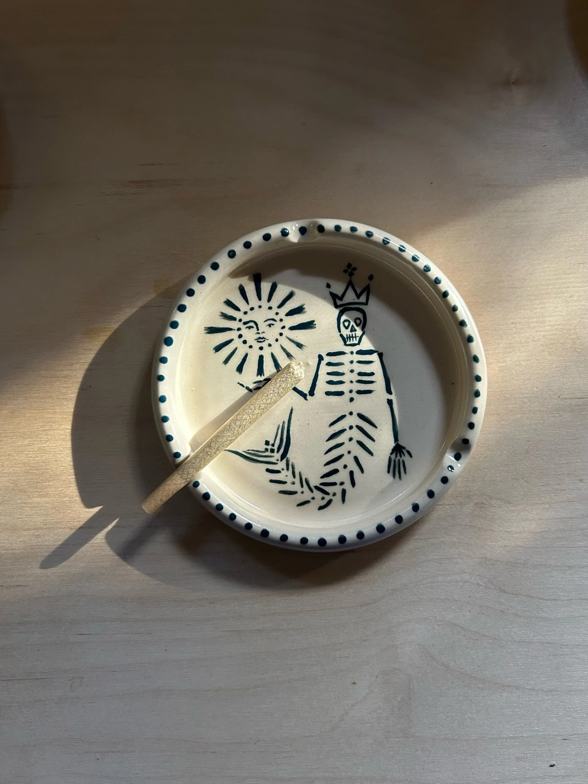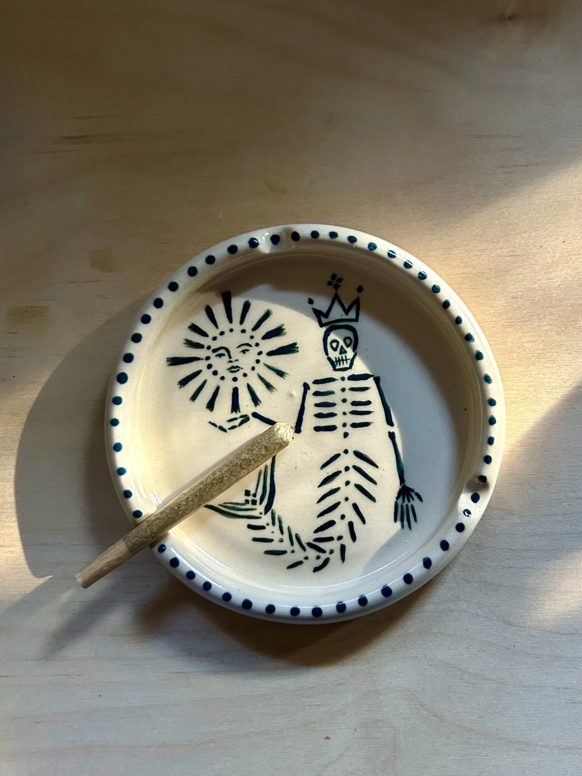 A Meltz x Bluestone Babe match made in heaven. The ashtray is the perfect canvas to showcase Rosa's etherial stick & poke designs- collect your very own coffee table centerpiece, wheel thrown by Alex, hand painted by Rosa.